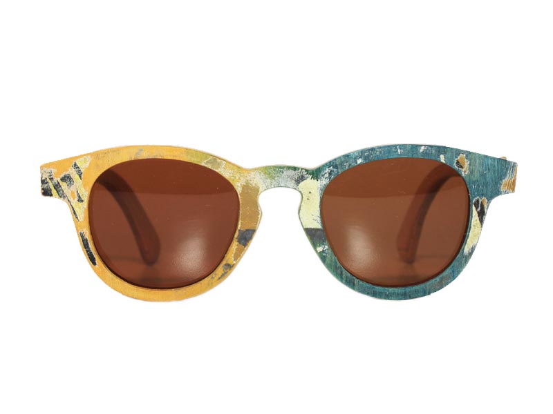 Handcrafted eyewear made from recycled skateboards